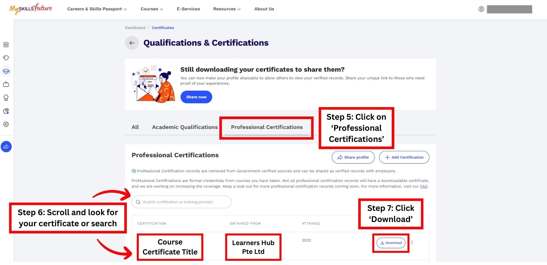 For Singpass holders, log on to www.myskillsfuture.gov.sg with your SingPass
